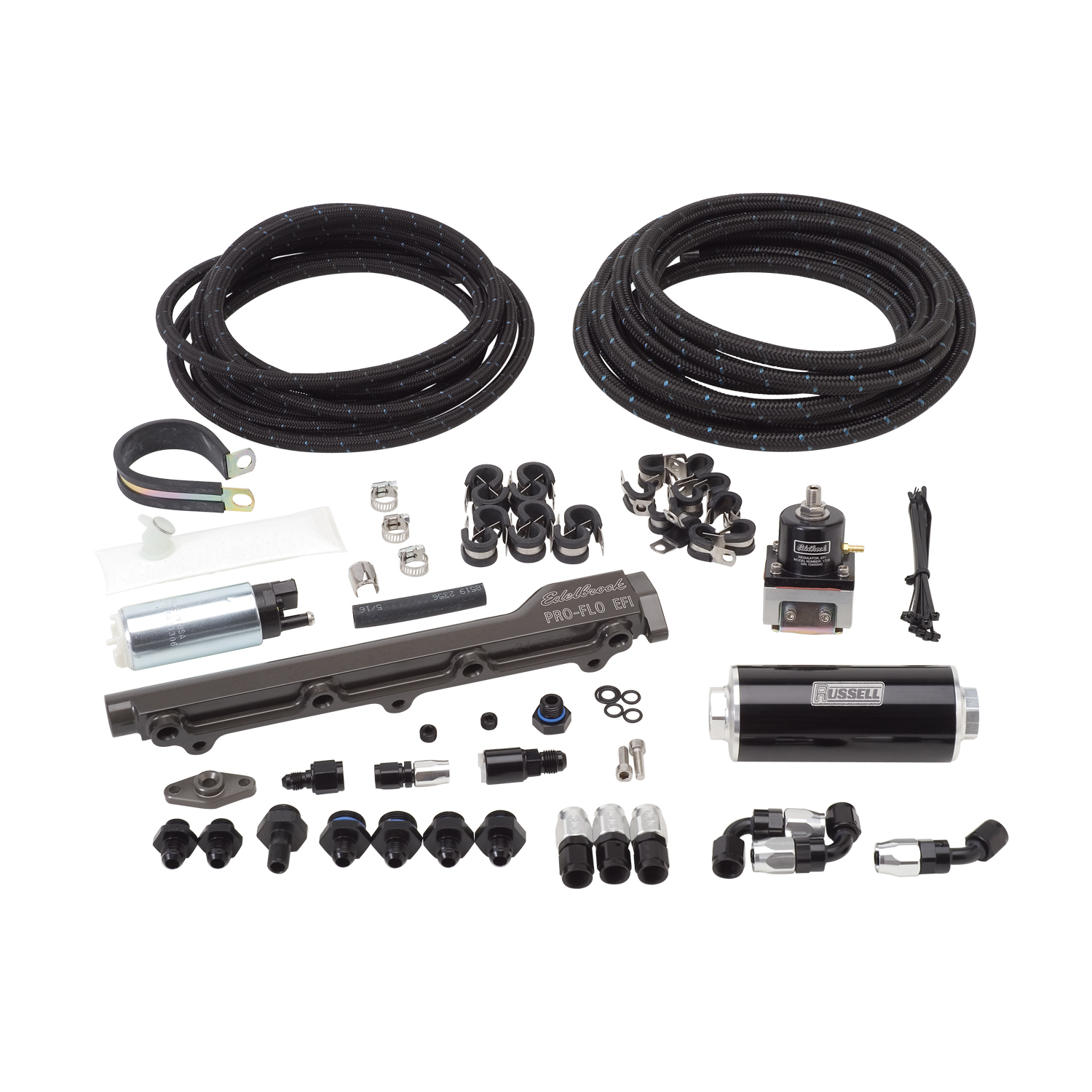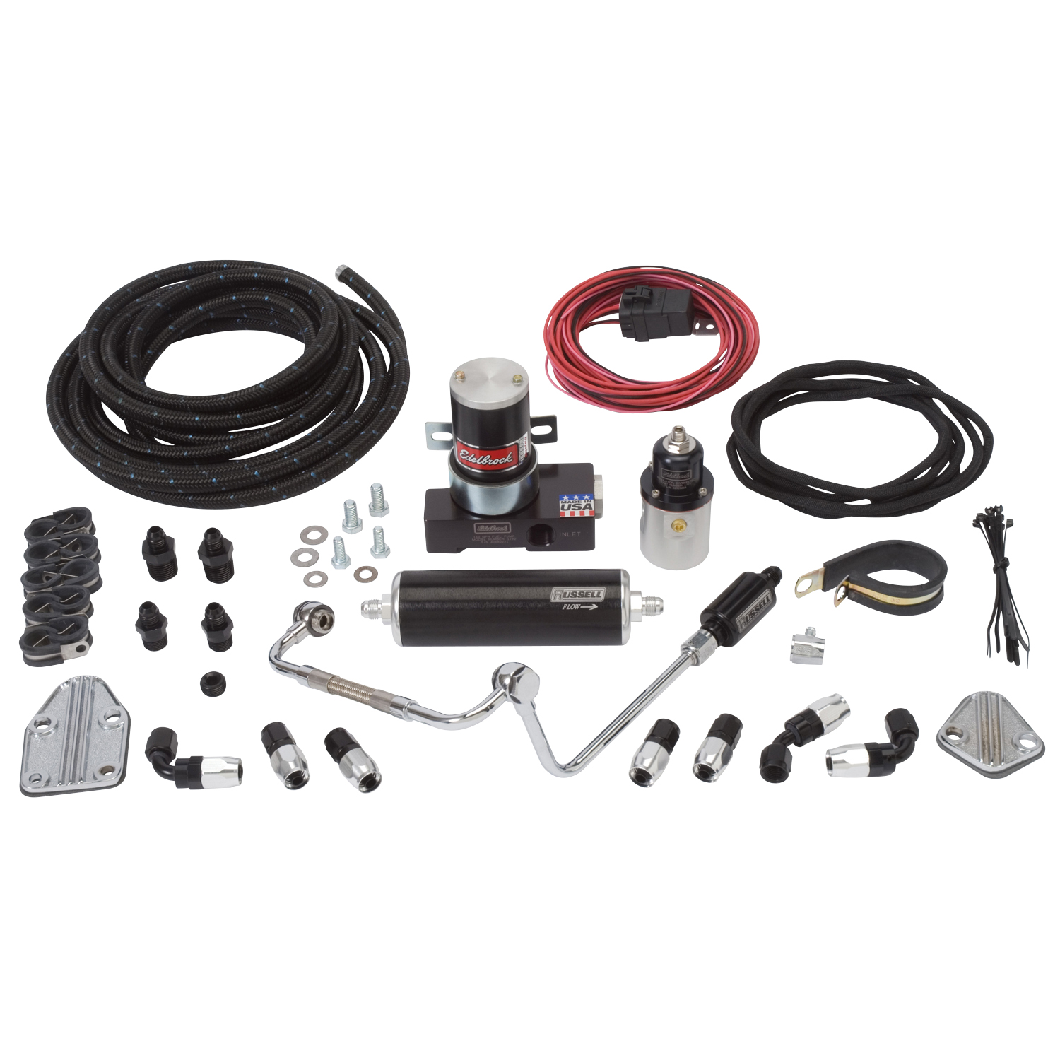 EFI FUEL PLUMBING KIT FORD 5.0L PASSENGER CAR APPL. FIREWALL TO MANIFOLD BLK/CLE