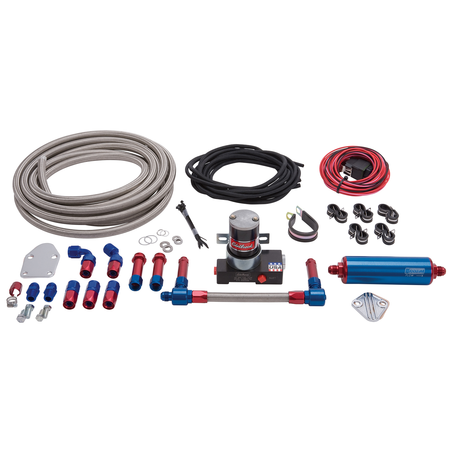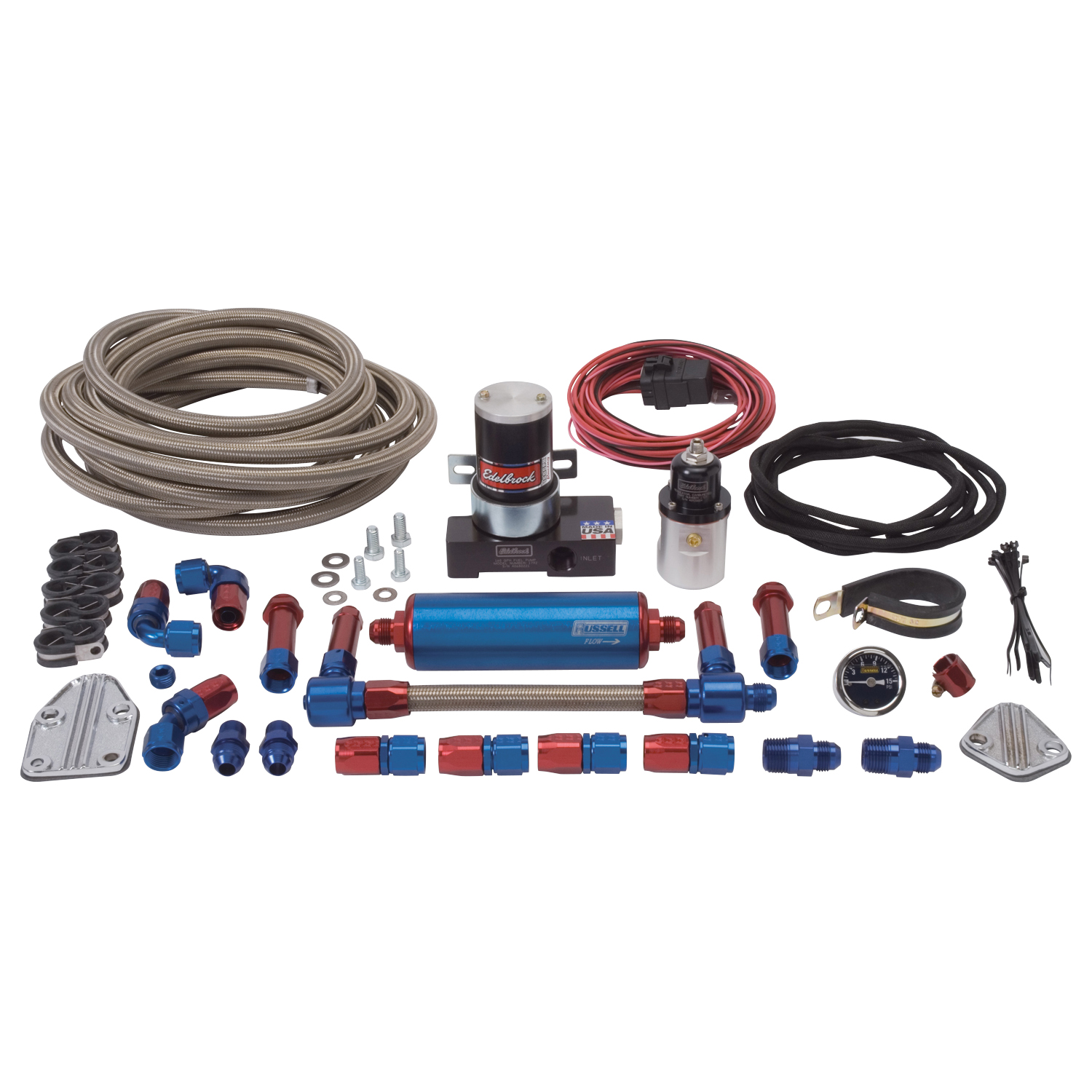 EFI FUEL PLUMBING KIT FORD 5.0L PASSENGER CAR APPL. FIREWALL TO MANIFOLD RED/BLU